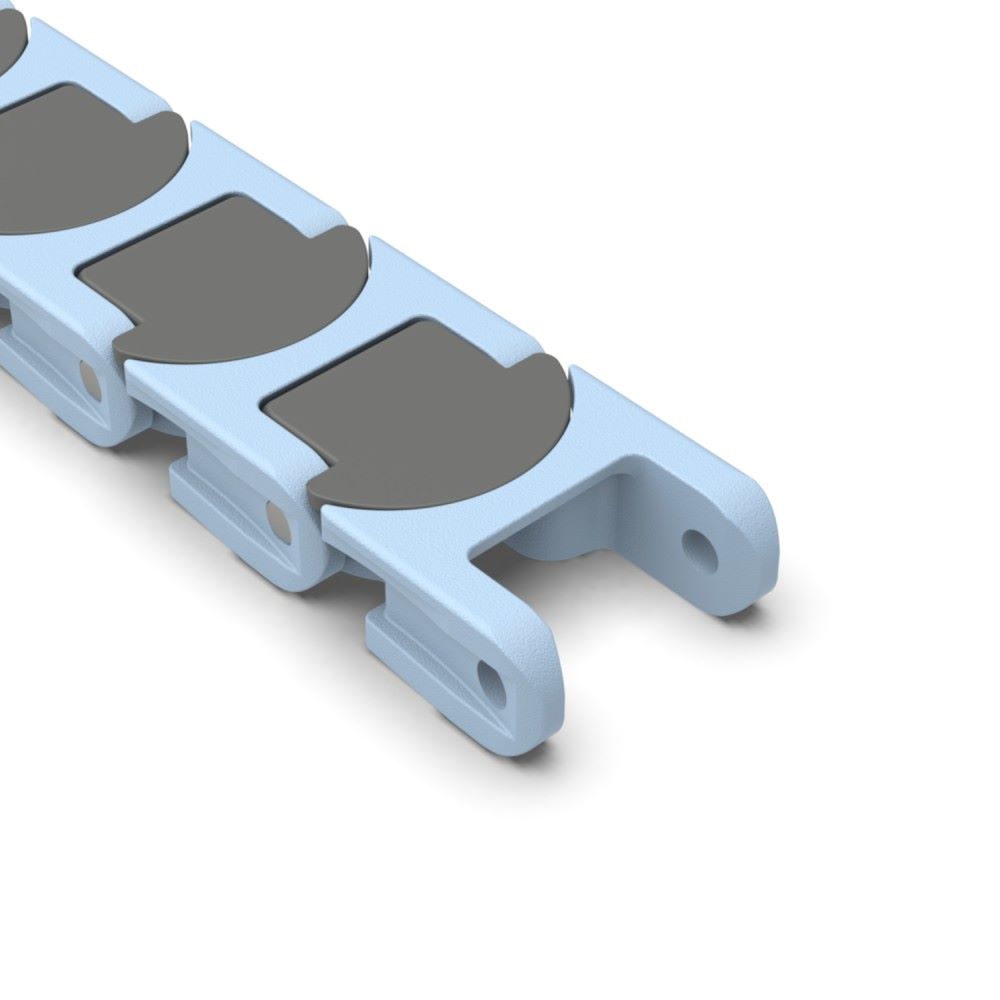 - Plastic conveyor chains made Acetal (POM) or Polyethylene are suitable for lightweight applications where lubrication-free operation is needed.